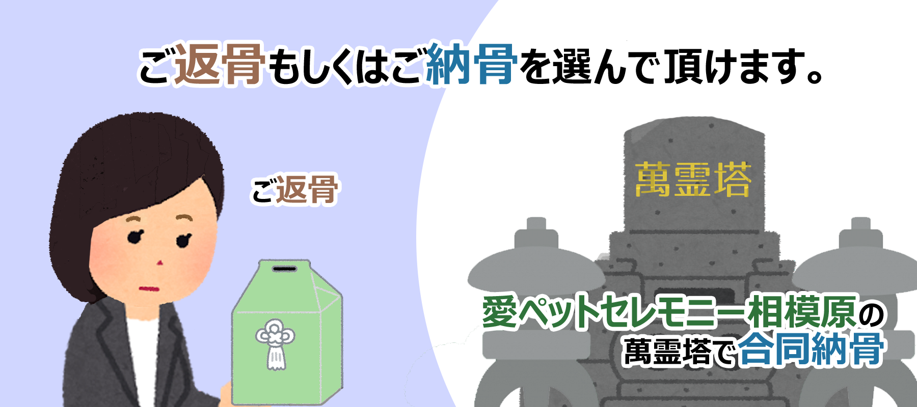 ご火葬後はご返骨かご納骨が選べます。